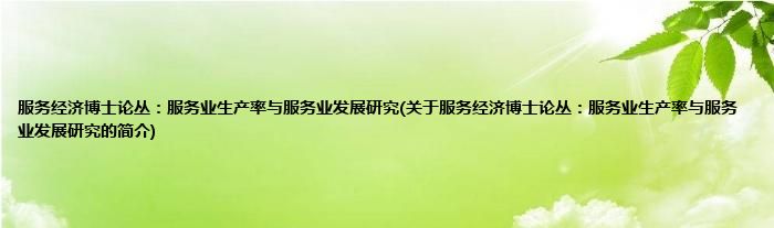 大家好,服务经济博士论丛:服务业生产率与服务业发展研究,关于服务经济博士论丛:服务业生产率与服务业发展研究的简介很多人还不知道,现在让我们一起来看看吧!