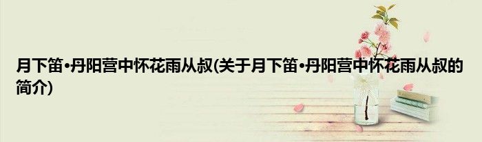 月下笛·丹阳营中怀花雨从叔(关于月下笛·丹阳营中怀花雨从叔的简介)