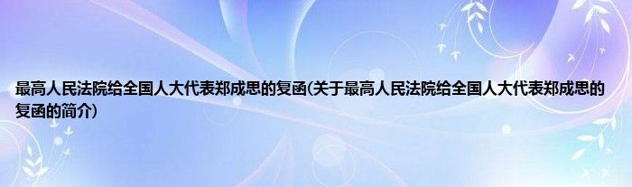 本文关于最高人民法院给全国人大代表郑成思的复函的简介就讲解完毕,希望对大家有所帮助。