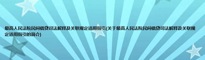 本文关于最高人民法院民间借贷司法解释及关联规定适用指引的简介就讲解完毕,希望对大家有所帮助。