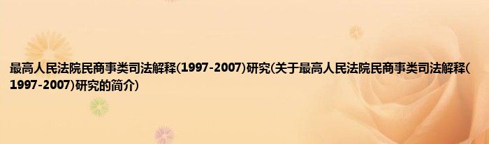 最高人民法院民商事类司法解释(1997-2007)研究(关于最高人民法院民商事类司法解释(1997-2007)研究的简介)