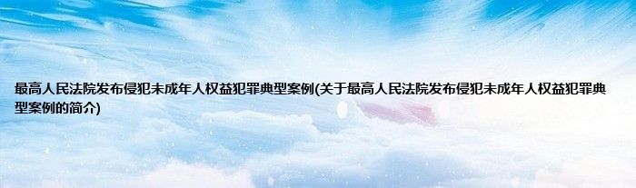 本文关于最高人民法院发布侵犯未成年人权益犯罪典型案例的简介就讲解完毕,希望对大家有所帮助。