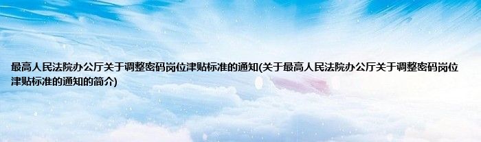 本文关于最高人民法院办公厅关于调整密码岗位津贴标准的通知的简介就讲解完毕,希望对大家有所帮助。