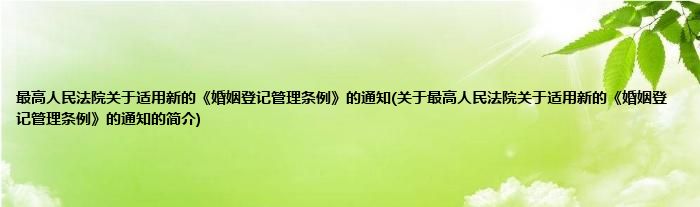 本文关于最高人民法院关于适用新的《婚姻登记管理条例》的通知的简介就讲解完毕,希望对大家有所帮助。