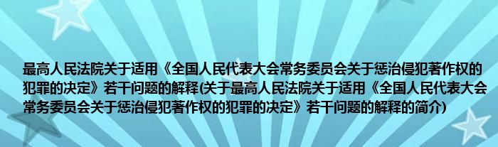 大家好,最高人民法院关于适用《全国人民代表大会常务委员会关于惩治侵犯著作权的犯罪的决定》若干问题的解释,关于最高人民法院关于适用《全国人民代表大会常务委员会关于惩治侵犯著作权的犯罪的决定》若干问题的解释的简介很多人还不知道,现在让我们一起来看看吧!