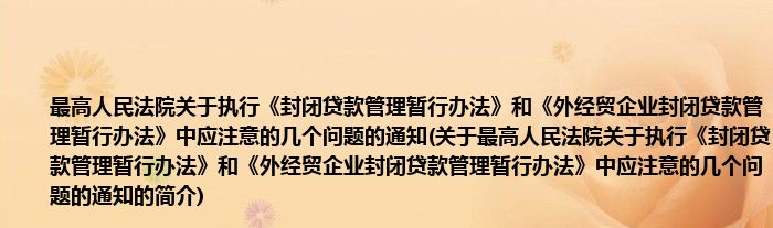 本文关于最高人民法院关于执行《封闭贷款管理暂行办法》和《外经贸企业封闭贷款管理暂行办法》中应注意的几个问题的通知的简介就讲解完毕,希望对大家有所帮助。