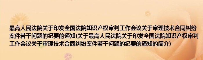 本文关于最高人民法院关于印发全国法院知识产权审判工作会议关于审理技术合同纠纷案件若干问题的纪要的通知的简介就讲解完毕,希望对大家有所帮助。
