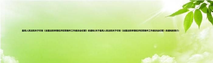 本文关于最高人民法院关于印发《全国法院审理经济犯罪案件工作座谈会纪要》的通知的简介就讲解完毕,希望对大家有所帮助。