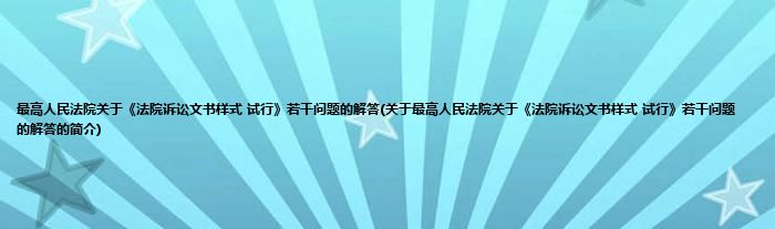 大家好,最高人民法院关于《法院诉讼文书样式 试行》若干问题的解答,关于最高人民法院关于《法院诉讼文书样式 试行》若干问题的解答的简介很多人还不知道,现在让我们一起来看看吧!