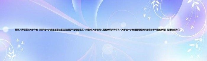 最高人民检察院关于印发《关于进一步推进基层检察院建设若干问题的意见》的通知(关于最高人民检察院关于印发《关于进一步推进基层检察院建设若干问题的意见》的通知的简介)