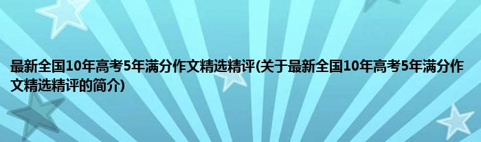 本文关于最新全国10年高考5年满分作文精选精评的简介就讲解完毕,希望对大家有所帮助。