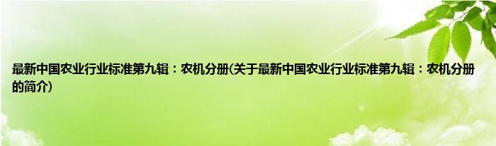 最新中国农业行业标准第九辑:农机分册(关于最新中国农业行业标准第九辑:农机分册的简介)