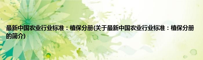 本文关于最新中国农业行业标准:植保分册的简介就讲解完毕,希望对大家有所帮助。