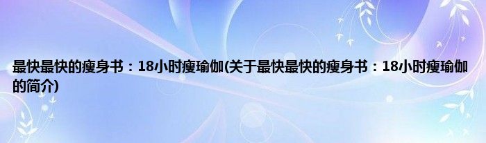 本文关于最快最快的瘦身书:18小时瘦瑜伽的简介就讲解完毕,希望对大家有所帮助。