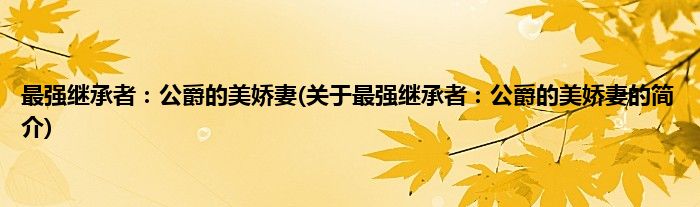 最强继承者:公爵的美娇妻(关于最强继承者:公爵的美娇妻的简介)