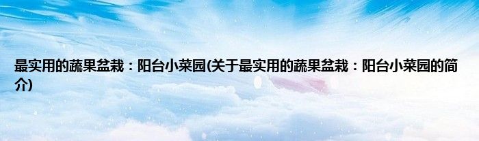 本文关于最实用的蔬果盆栽:阳台小菜园的简介就讲解完毕,希望对大家有所帮助。