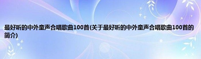 本文关于最好听的中外童声合唱歌曲100首的简介就讲解完毕,希望对大家有所帮助。