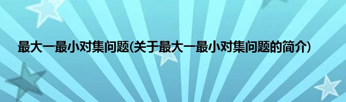 大家好,最大一最小对集问题,关于最大一最小对集问题的简介很多人还不知道,现在让我们一起来看看吧!
