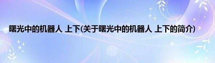 曙光中的机器人 上下(关于曙光中的机器人 上下的简介)