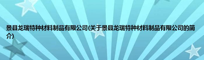 景县龙瑞特种材料制品有限公司(关于景县龙瑞特种材料制品有限公司的简介)