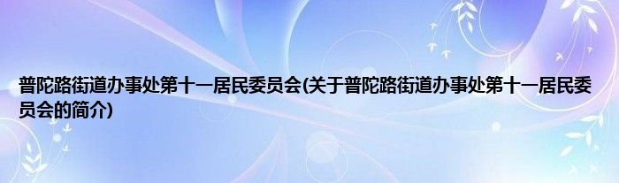 本文关于普陀路街道办事处第十一居民委员会的简介就讲解完毕,希望对大家有所帮助。