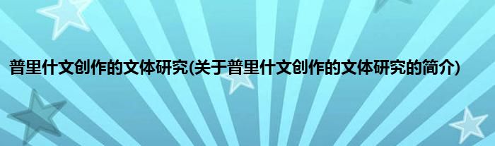 本文关于普里什文创作的文体研究的简介就讲解完毕,希望对大家有所帮助。