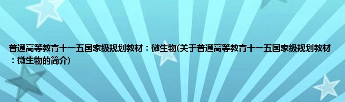 大家好,普通高等教育十一五国家级规划教材:微生物,关于普通高等教育十一五国家级规划教材:微生物的简介很多人还不知道,现在让我们一起来看看吧!
