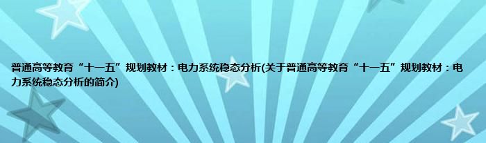 本文关于普通高等教育“十一五”规划教材:电力系统稳态分析的简介就讲解完毕,希望对大家有所帮助。