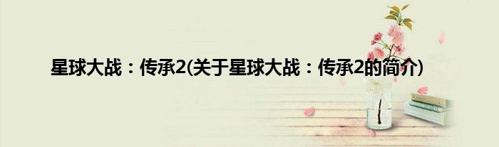 大家好,星球大战:传承2,关于星球大战:传承2的简介很多人还不知道,现在让我们一起来看看吧!