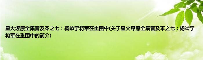 本文关于星火燎原全集普及本之七:杨靖宇将军在重围中的简介就讲解完毕,希望对大家有所帮助。