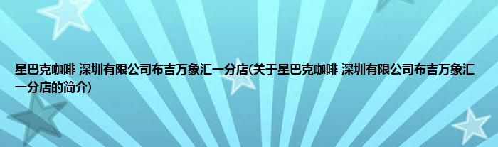 星巴克咖啡 深圳有限公司布吉万象汇一分店(关于星巴克咖啡 深圳有限公司布吉万象汇一分店的简介)
