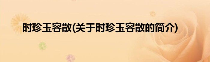 本文关于时珍玉容散的简介就讲解完毕,希望对大家有所帮助。