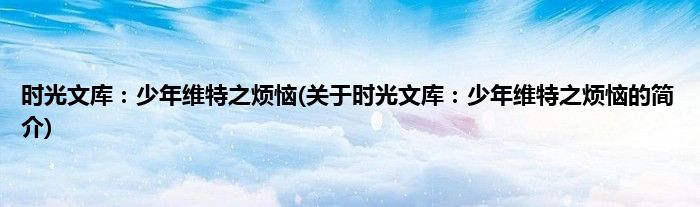 本文关于时光文库:少年维特之烦恼的简介就讲解完毕,希望对大家有所帮助。