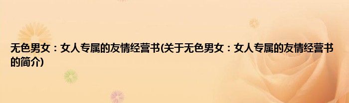 本文关于无色男女:女人专属的友情经营书的简介就讲解完毕,希望对大家有所帮助。