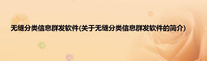 无缝分类信息群发软件(关于无缝分类信息群发软件的简介)