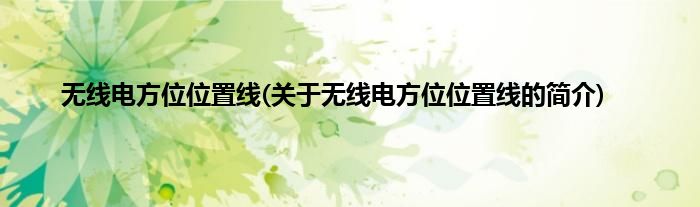 大家好,无线电方位位置线,关于无线电方位位置线的简介很多人还不知道,现在让我们一起来看看吧!