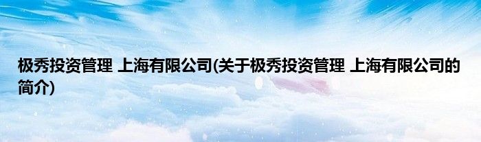 本文关于极秀投资管理 上海有限公司的简介就讲解完毕,希望对大家有所帮助。