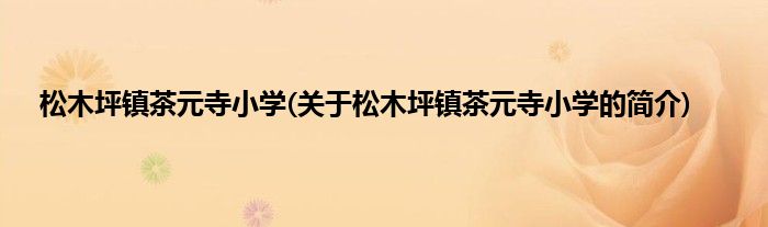 本文关于松木坪镇茶元寺小学的简介就讲解完毕,希望对大家有所帮助。
