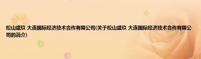 本文关于松山盛玖 大连国际经济技术合作有限公司的简介就讲解完毕,希望对大家有所帮助。