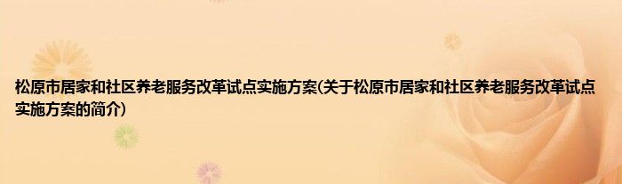 大家好,松原市居家和社区养老服务改革试点实施方案,关于松原市居家和社区养老服务改革试点实施方案的简介很多人还不知道,现在让我们一起来看看吧!