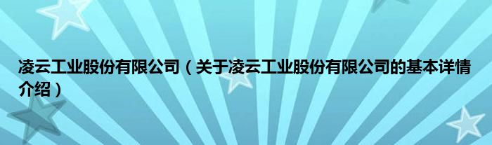 本文关于凌云工业股份有限公司的基本详情介绍就讲解完毕,希望对大家有所帮助。