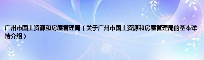 本文关于广州市国土资源和房屋管理局的基本详情介绍就讲解完毕,希望对大家有所帮助。