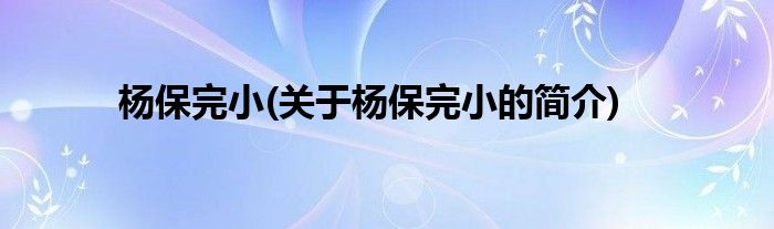 本文关于杨保完小的简介就讲解完毕,希望对大家有所帮助。