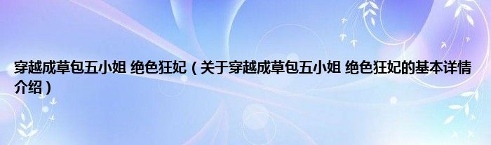 本文关于穿越成草包五小姐 绝色狂妃的基本详情介绍就讲解完毕,希望对大家有所帮助。