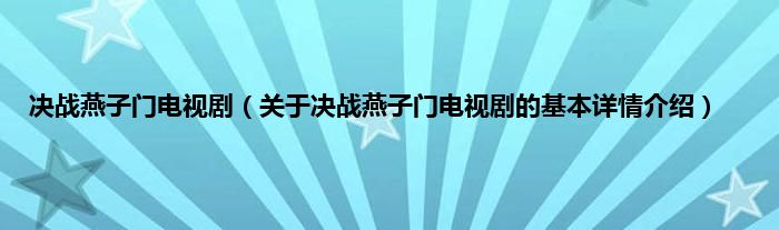 本文关于决战燕子门电视剧的基本详情介绍就讲解完毕,希望对大家有所帮助。