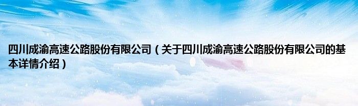 本文关于四川成渝高速公路股份有限公司的基本详情介绍就讲解完毕,希望对大家有所帮助。