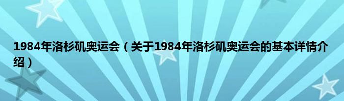 本文关于1984年洛杉矶奥运会的基本详情介绍就讲解完毕,希望对大家有所帮助。