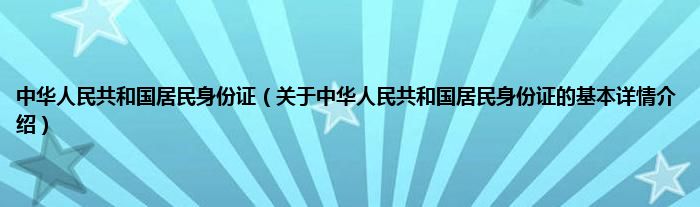 本文关于中华人民共和国居民身份证的基本详情介绍就讲解完毕,希望对大家有所帮助。