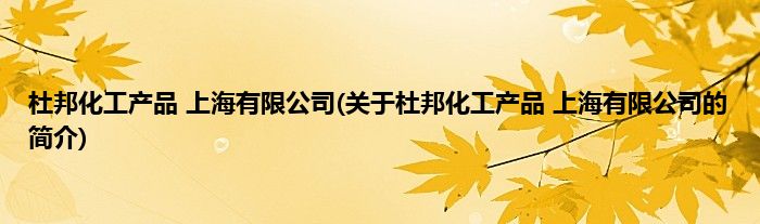 本文关于杜邦化工产品 上海有限公司的简介就讲解完毕,希望对大家有所帮助。
