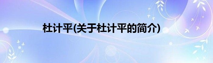 杜计平(关于杜计平的简介)